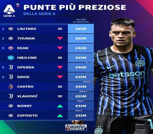 1. 劳塔罗(国际米兰) 8500万欧元