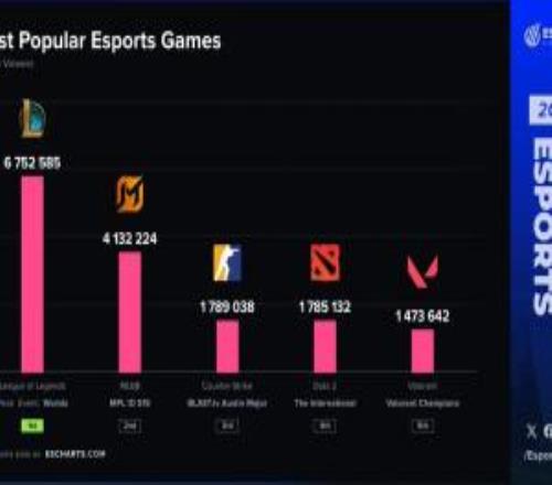 体育资讯1月14日称 今日外媒统计2025游戏观看峰值排行,具体如下;英雄联盟——...